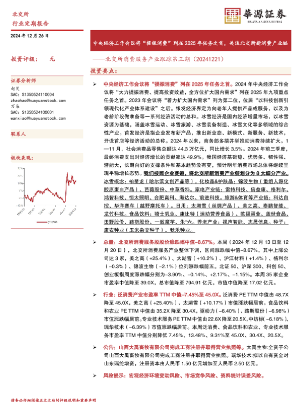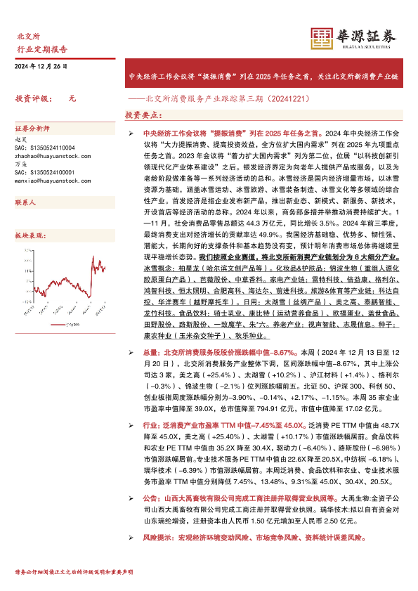 【华源证券】【20241226】北交所消费服务产业跟踪第三期:中央经济工作会议将“提振消费”列在2025年任务之首,关注北交所新消费产业链-17页
