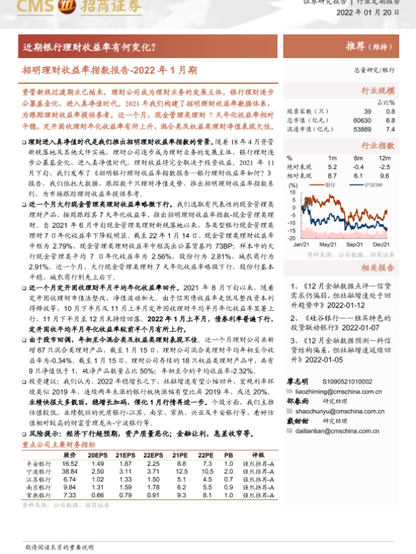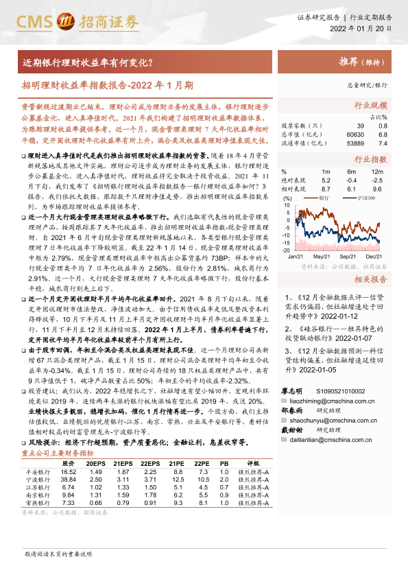 【海通证券】【20220120】银行业招明理财收益率指数报告-2022年1月期:近期银行理财收益率有何变化?-17页