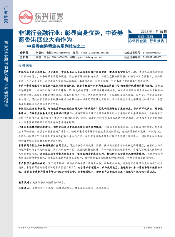 【东兴证券】【20220118】非银行金融行业中资券商跨境业务系列报告之二:彰显自身优势,中资券商香港展业大有作为-15页