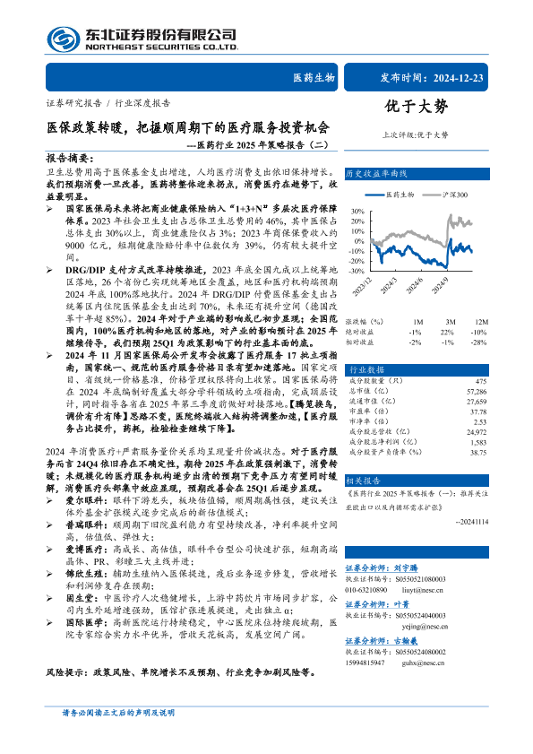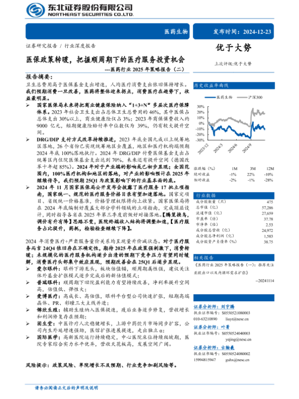 【东北证券】【20241223】医药行业2025年策略报告(二):医保政策转暖,把握顺周期下的医疗服务投资机会-37页