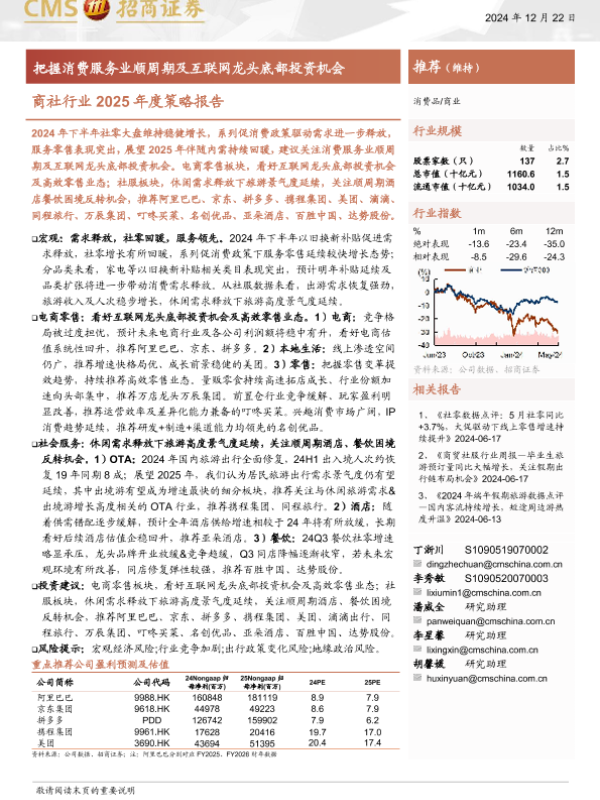 【海通证券】【20241222】商社行业2025年度策略报告:把握消费服务业顺周期及互联网龙头底部投资机会-39页