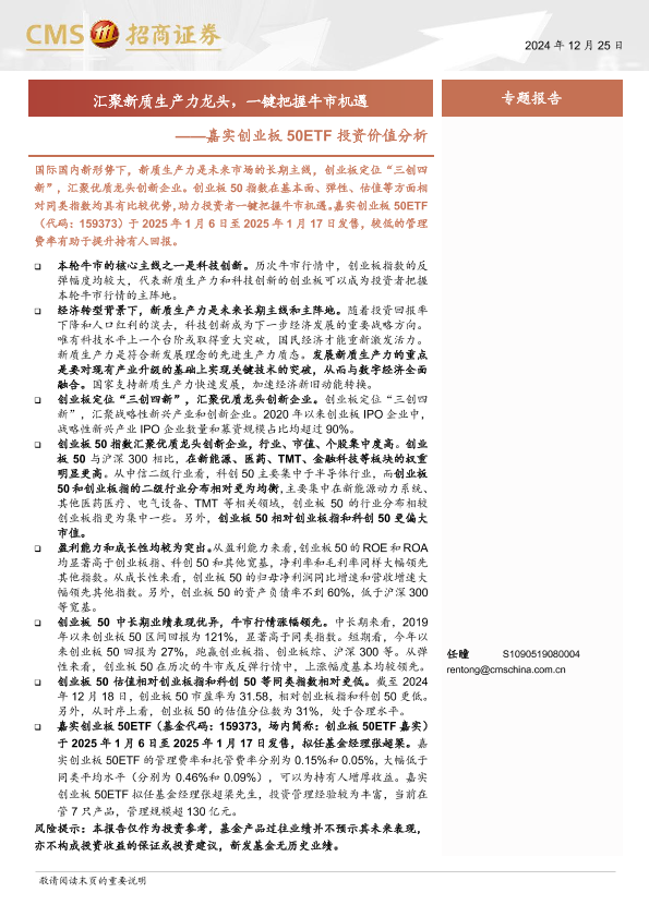 【海通证券】【20241225】嘉实创业板50ETF投资价值分析:汇聚龙头新质生产力,一键把握牛市机遇-15页