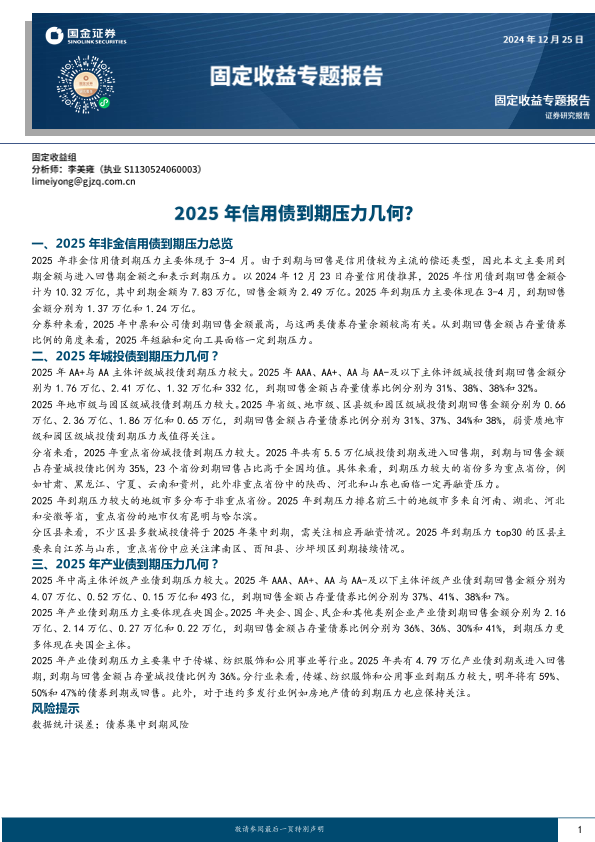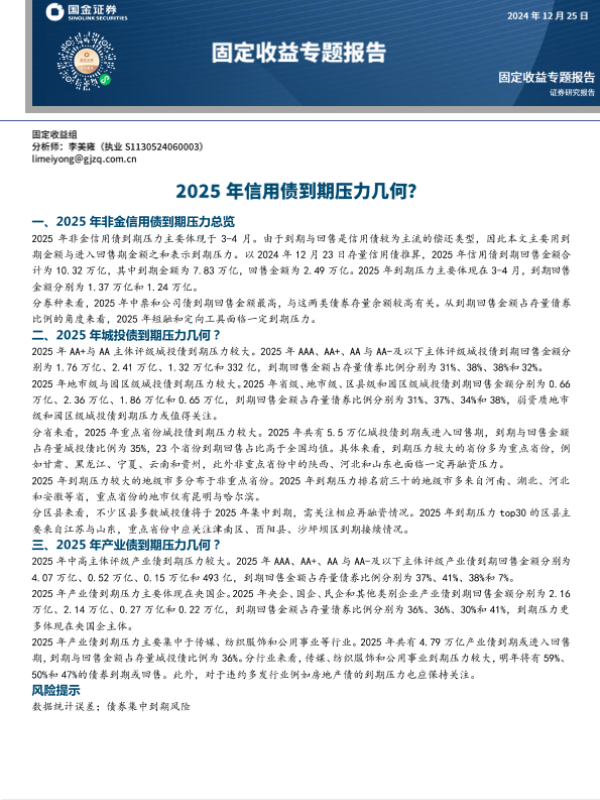【国金证券】【20241225】固定收益专题报告:2025年信用债到期压力几何?-10页