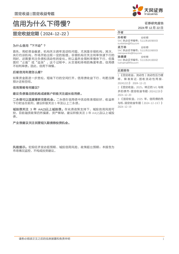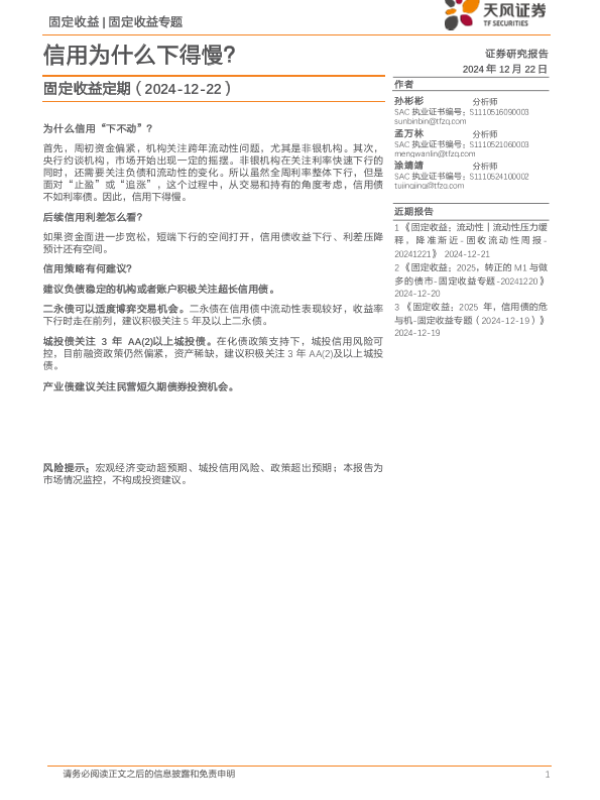 【天风证券】【20241222】固定收益定期:信用为什么下得慢?-24页
