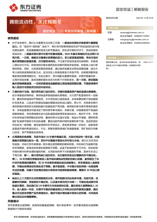 【东方证券】【20241222】固定收益2025年度投资策略(利率债):拥抱流动性,关注预期差-27页