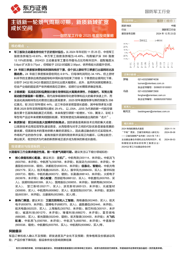 【东方证券】【20241223】国防军工行业2025年度投资策略:主链新一轮景气周期可期,新质新域扩宽成长空间-56页