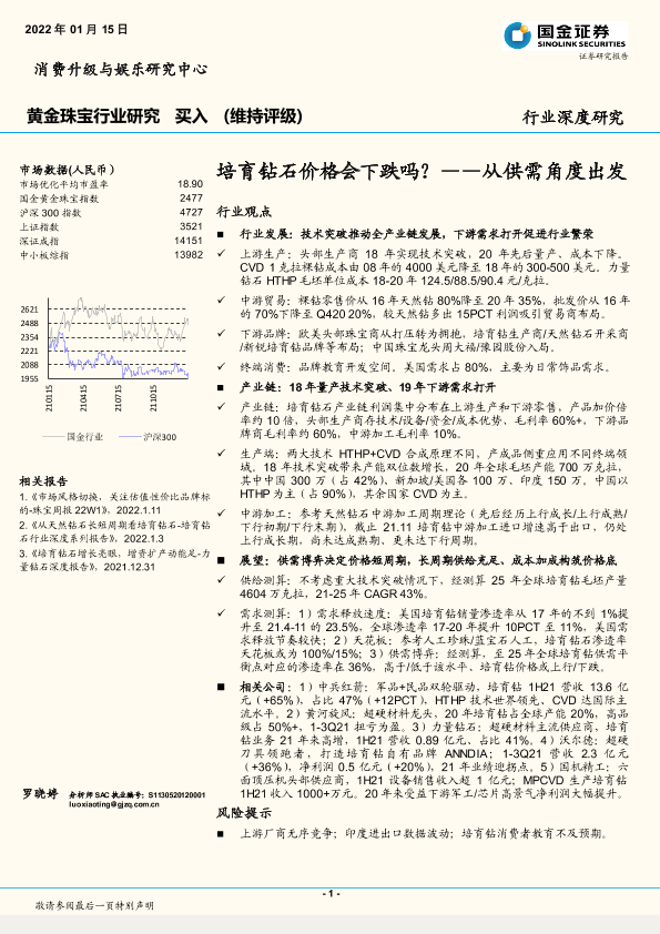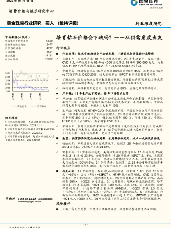 【国金证券】【20220115】黄金珠宝行业深度研究:从供需角度出发,培育钻石价格会下跌吗?-29页