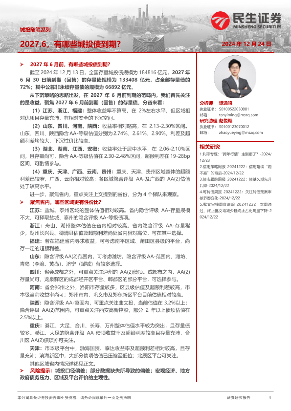 【民生证券】【20241224】城投随笔系列:2027.6,有哪些城投债到期?-14页