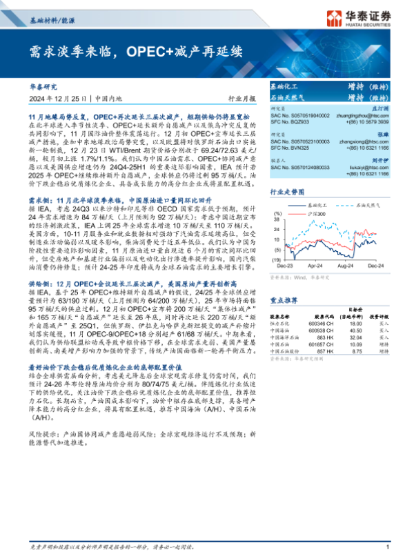 【华泰证券】【20241225】基础材料/能源行业月报:需求淡季来临,OPEC+减产再延续-13页