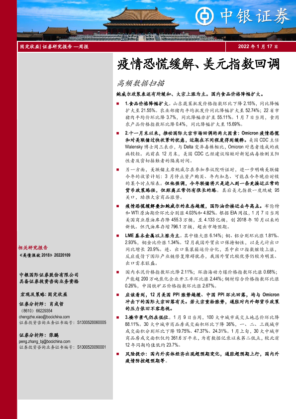 【中银证券】【20220117】高频数据扫描:疫情恐慌缓解、美元指数回调-20页