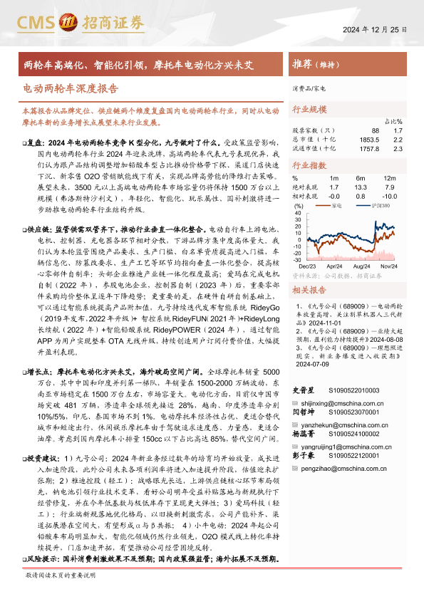 【海通证券】【20241225】家电行业电动两轮车深度报告:两轮车高端化、智能化引领,摩托车电动化方兴未艾-31页