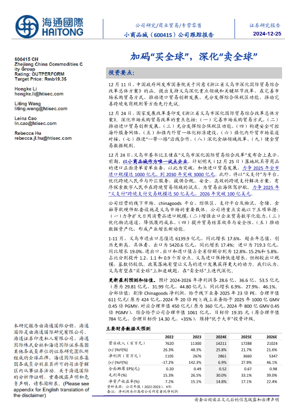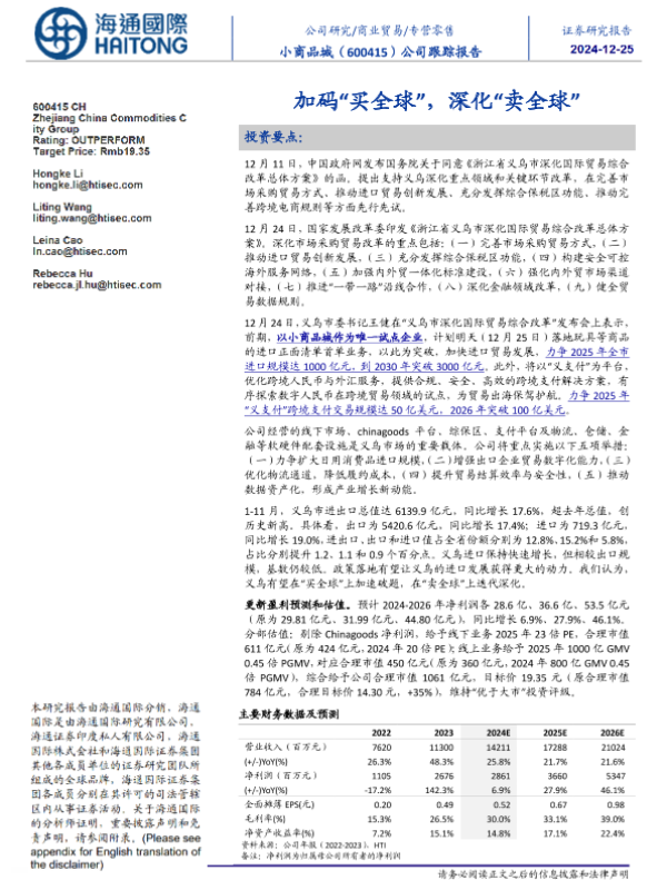 【海通国际】【20241225】小商品城(600415)公司跟踪报告:加码“买全球”,深化“卖全球”-16页