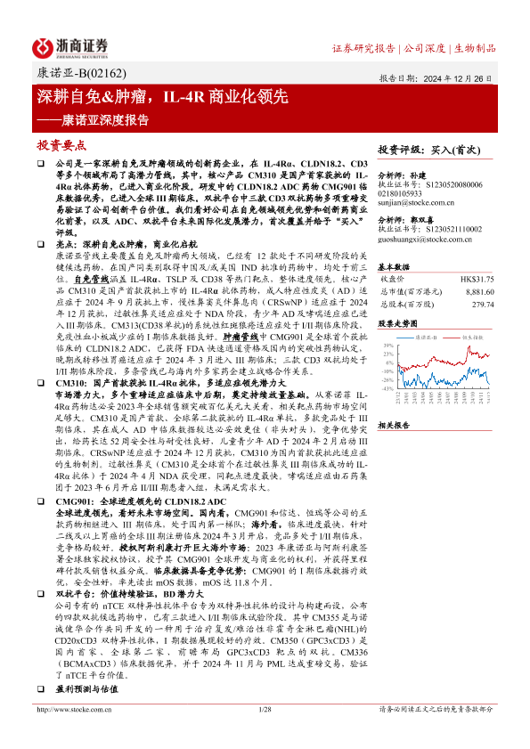 【浙商证券】【20241226】康诺亚-B(02162.HK)深耕自免&肿瘤,IL-4R商业化领先-28页