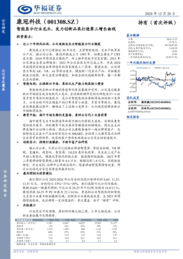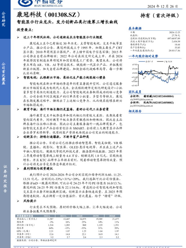 【华福证券】【20241226】康冠科技(001308)智能显示行业龙头,发力创新品类打造第三增长曲线-15页