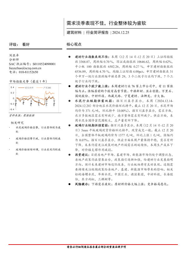 【首创证券】【20241225】建筑材料行业简评报告:需求淡季表现不佳,行业整体较为疲软-19页