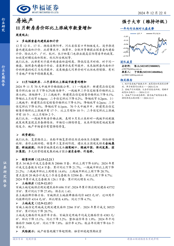 【华福证券】【20241222】房地产行业定期报告:11月新房房价环比上涨城市数量增加-14页