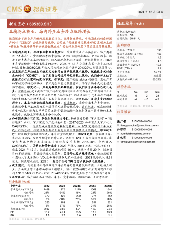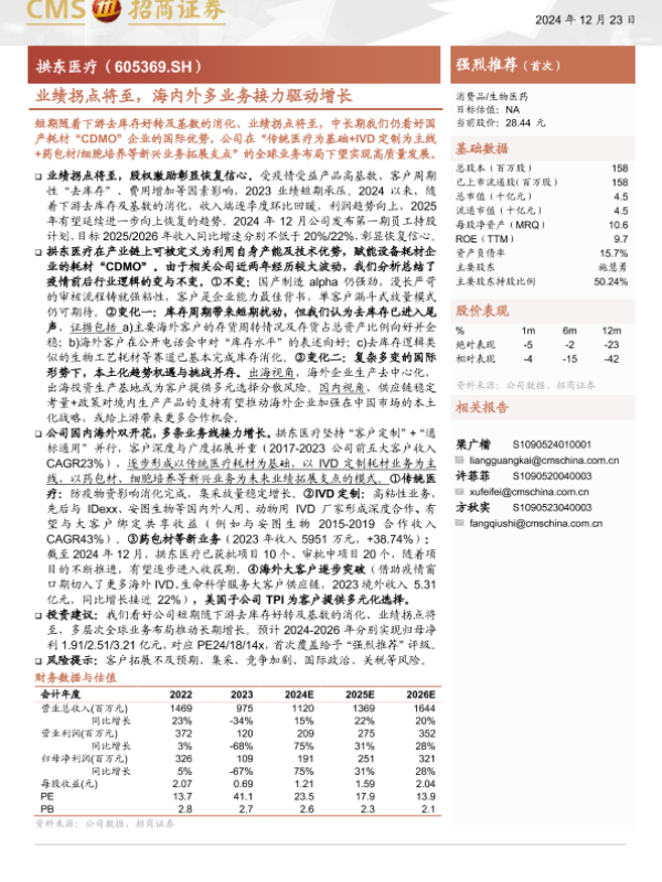 【海通证券】【20241223】拱东医疗(605369)业绩拐点将至,海内外多业务接力驱动增长-28页