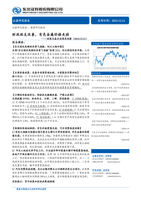 【东北证券】【20241221】政策及基本面周度观察:财政收支改善,有色金属价格走弱-35页