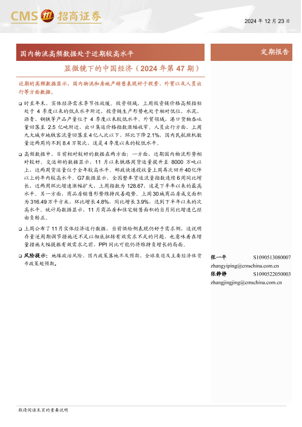 【海通证券】【20241223】显微镜下的中国经济(2024年第47期):国内物流高频数据处于近期较高水平-38页
