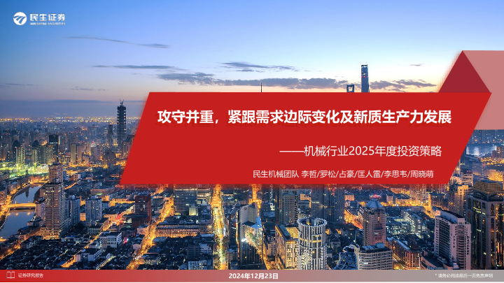 【民生证券】【20241223】机械行业2025年度投资策略:攻守并重,紧跟需求边际变化及新质生产力发展-116页