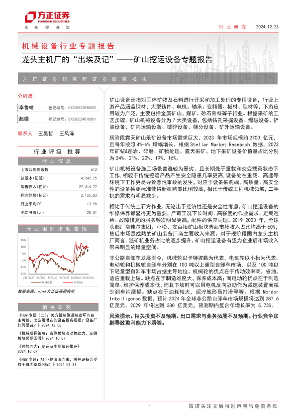 【方正证券】【20241223】机械设备行业专题报告-矿山挖运设备专题报告:龙头主机厂的“出埃及记”-16页