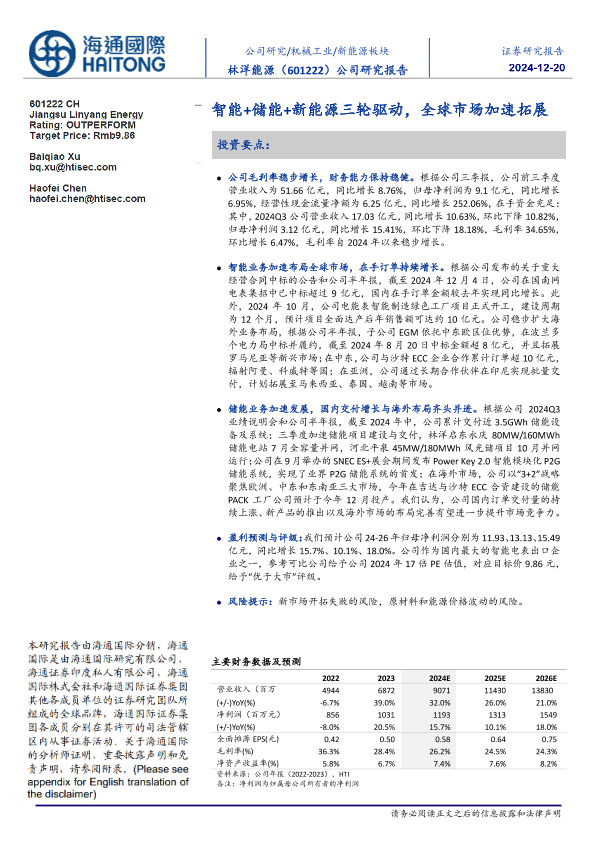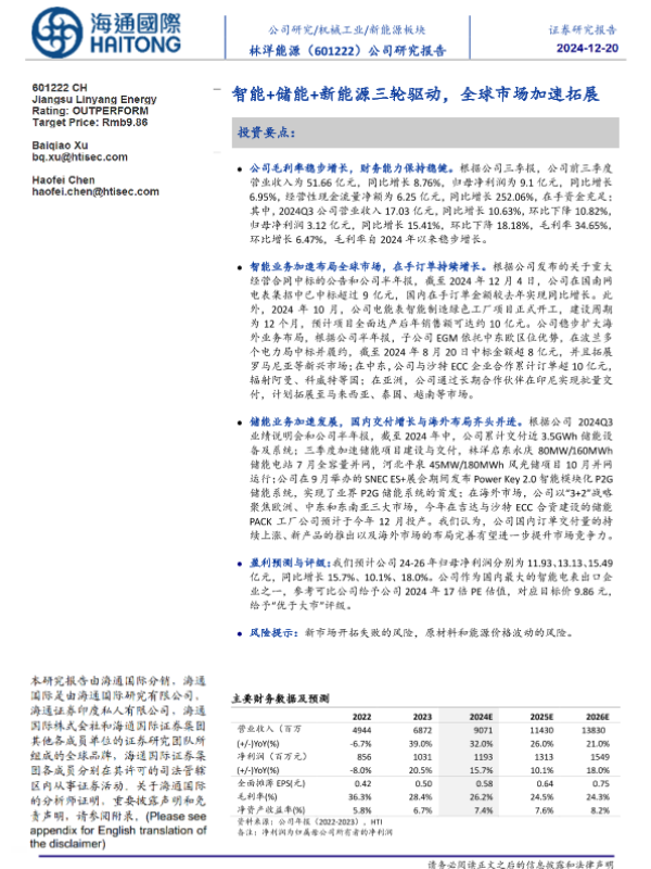 【海通国际】【20241220】林洋能源(601222)智能+储能+新能源三轮驱动,全球市场加速拓展-12页