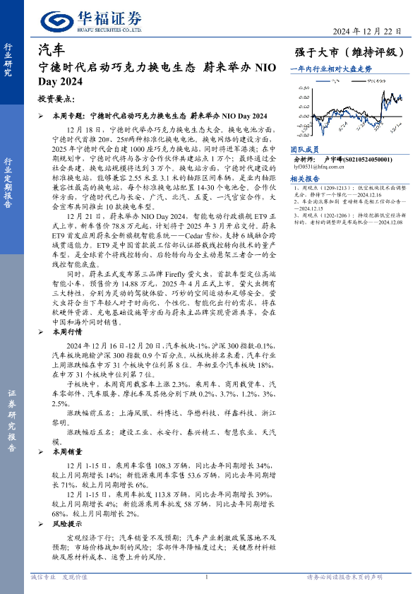 【华福证券】【20241222】汽车行业定期报告:宁德时代启动巧克力换电生态,蔚来举办 NIO Day 2024-12页