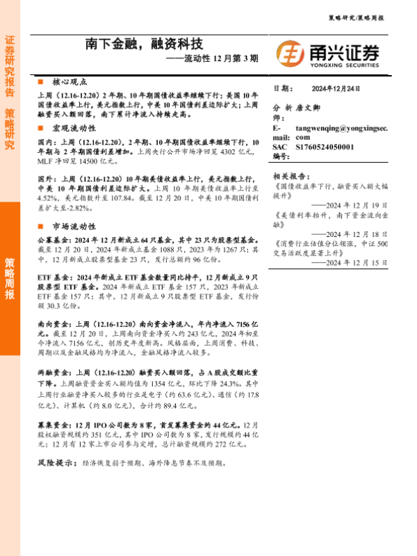 【甬兴证券】【20241224】流动性12月第3期:南下金融,融资科技-10页