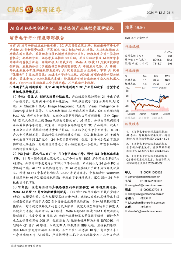 【海通证券】【20241224】消费电子行业深度跟踪报告:AI应用和终端创新加速,驱动端侧产业链投资逻辑深化-76页