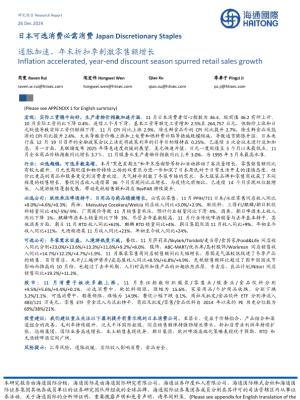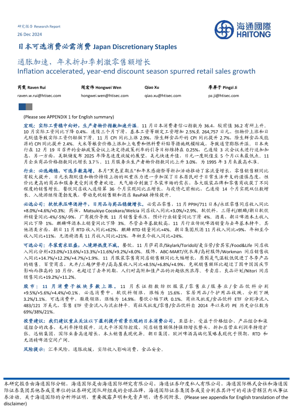 【海通国际】【20241226】消费行业日本可选消费必需消费:通胀加速,年末折扣季刺激零售额增长-24页