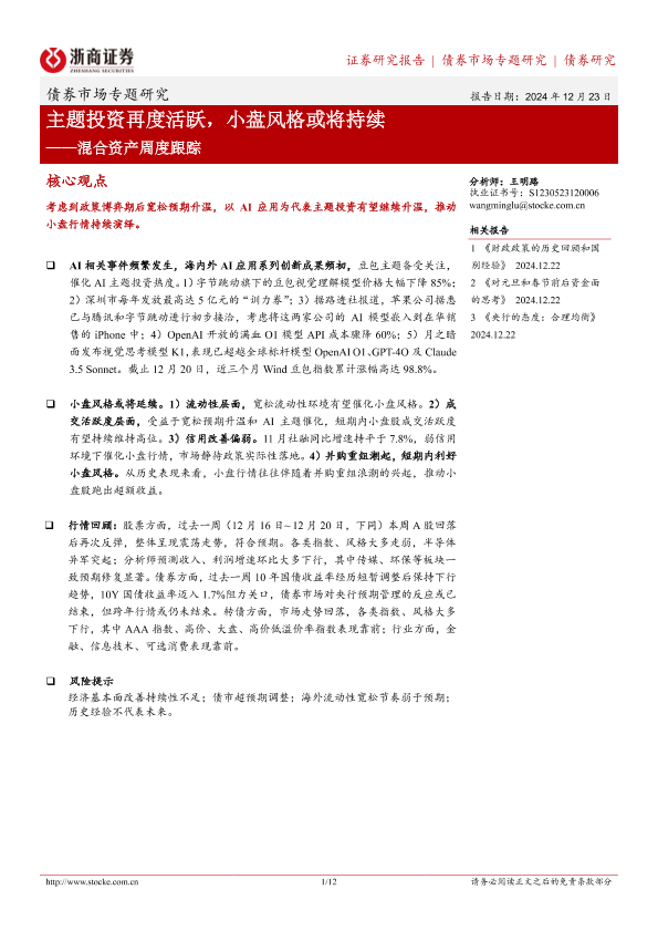 【浙商证券】【20241223】混合资产跟踪:主题投资再度活跃,小盘风格或将持续-12页