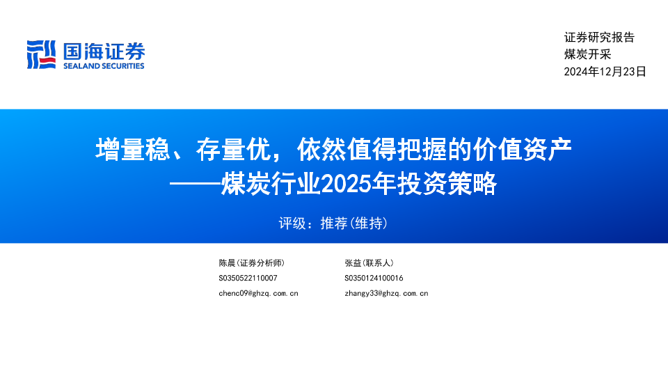 【国海证券】【20241223】煤炭行业2025年投资策略:增量稳、存量优,依然值得把握的价值资产-68页