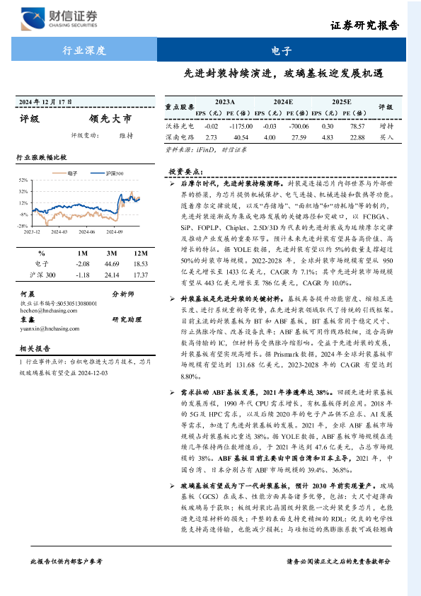 【财信证券】【20241217】电子行业深度:先进封装持续演进,玻璃基板迎发展机遇-25页