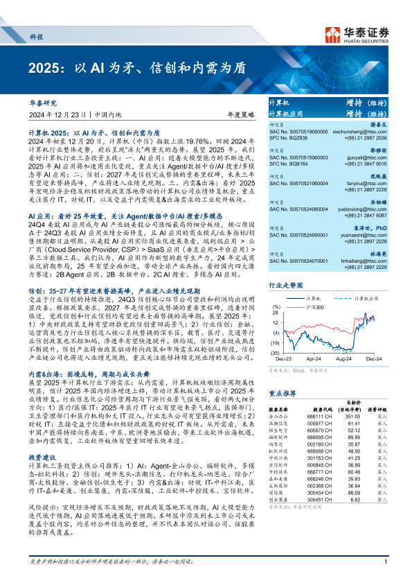 【华泰证券】【20241223】科技行业年度策略2025:以AI为矛、信创和内需为盾-42页