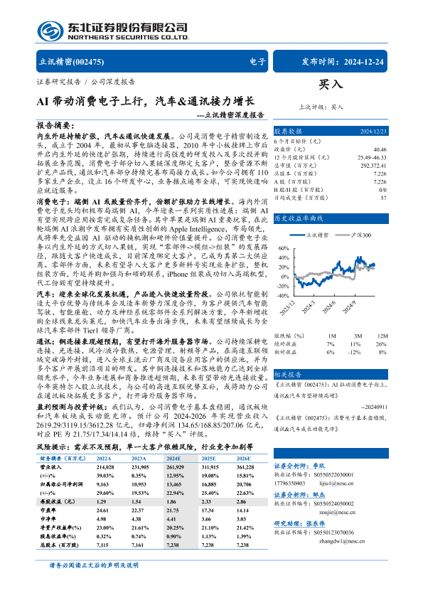 【东北证券】【20241224】立讯精密(002475)深度报告:AI带动消费电子上行,汽车&通讯接力增长-33页