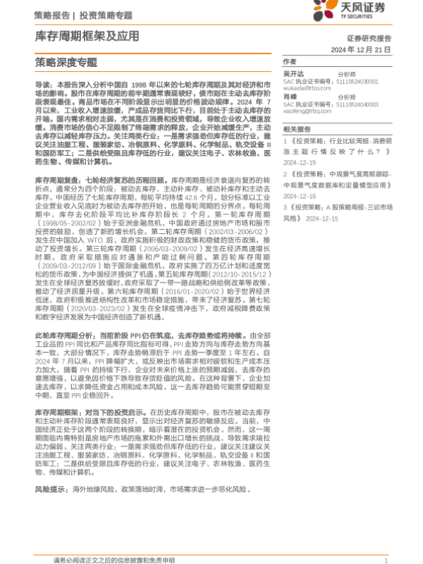 【天风证券】【20241221】策略深度专题:库存周期框架及应用-43页