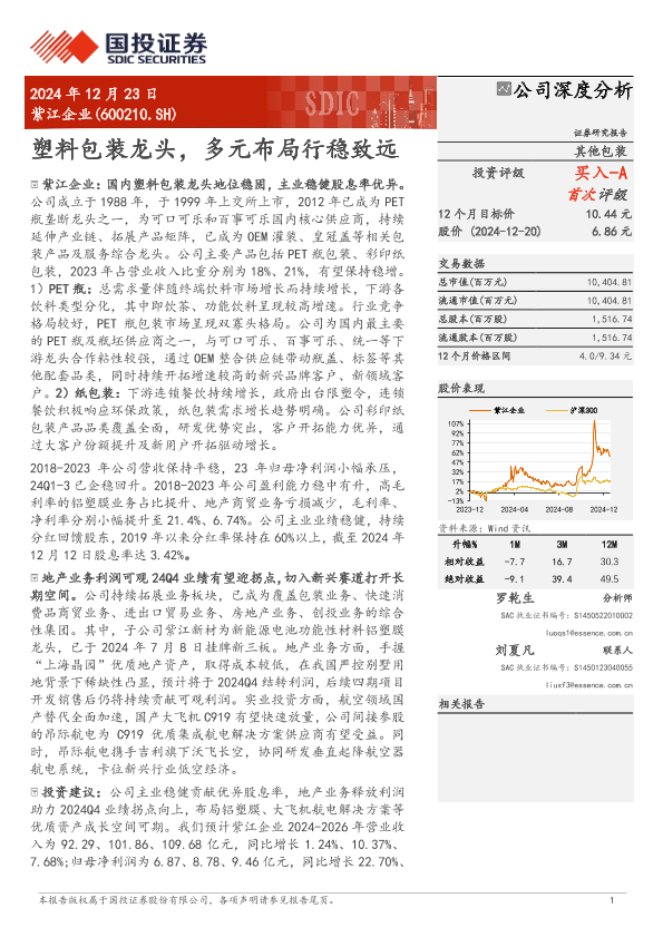 【国投证券】【20241223】紫江企业(600210)塑料包装龙头,多元布局行稳致远-23页