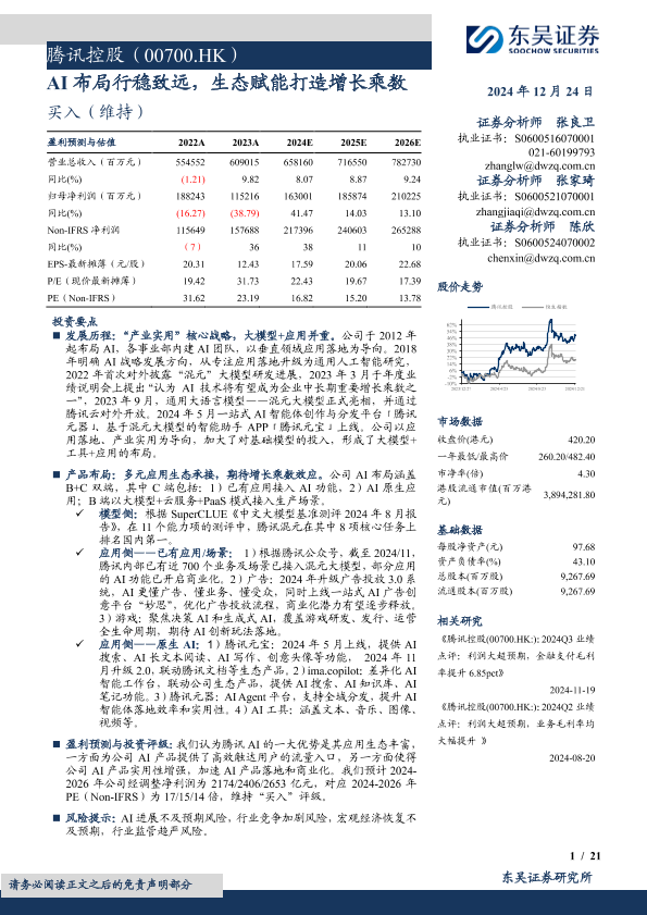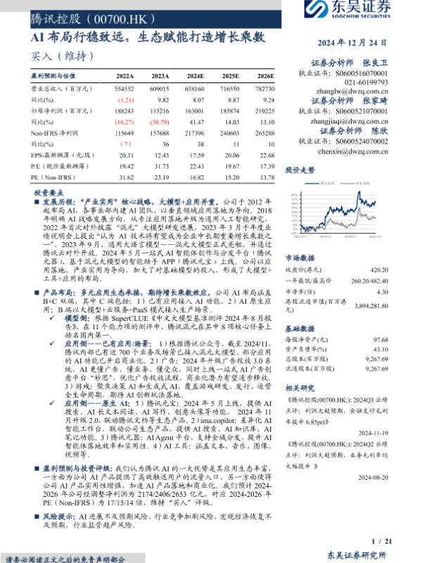 【东吴证券】【20241224】腾讯控股(00700.HK)AI布局行稳致远,生态赋能打造增长乘数-21页