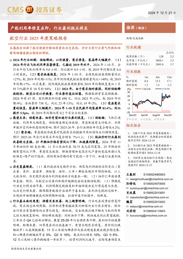【海通证券】【20241221】航空行业2025年度策略报告:产能利用率修复在即,行业盈利拐点将至-34页