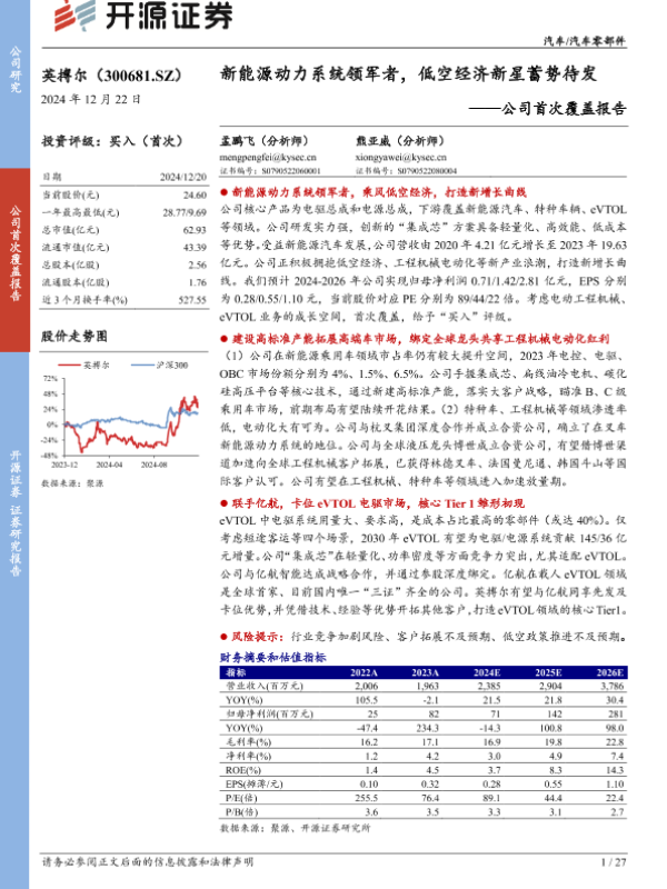 【开源证券】【20241222】英搏尔(300681)公司首次覆盖报告:新能源动力系统领军者,低空经济新星蓄势待发-27页