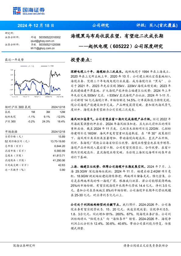 【国海证券】【20241218】起帆电缆(605222)公司深度研究:海缆黑马布局收获在望,有望迎二次成长期-31页