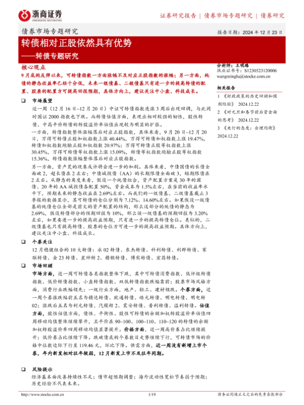 【浙商证券】【20241223】转债专题研究:转债相对正股依然具有优势-19页
