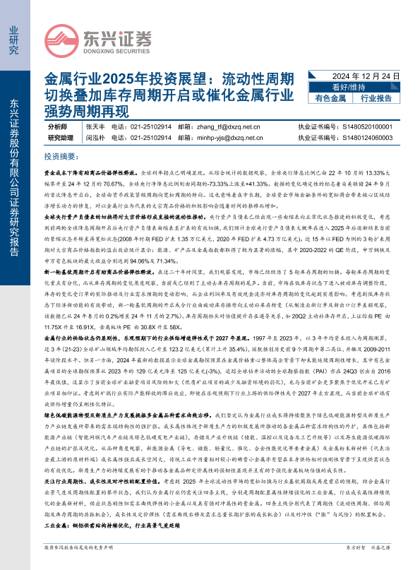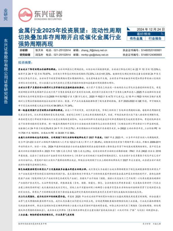 【东兴证券】【20241224】金属行业2025年投资展望:流动性周期切换叠加库存周期开启或催化金属行业强势周期再现-56页