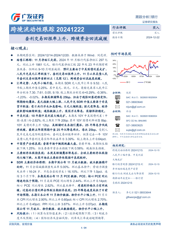 【广发证券】【20241222】银行业跨境流动性跟踪:套利交易回报率上升,跨境资金回流减缓-31页