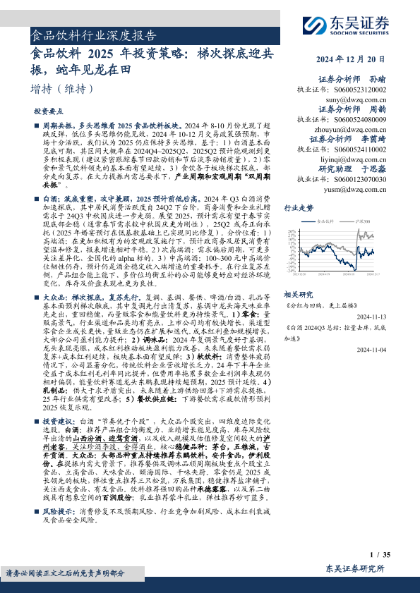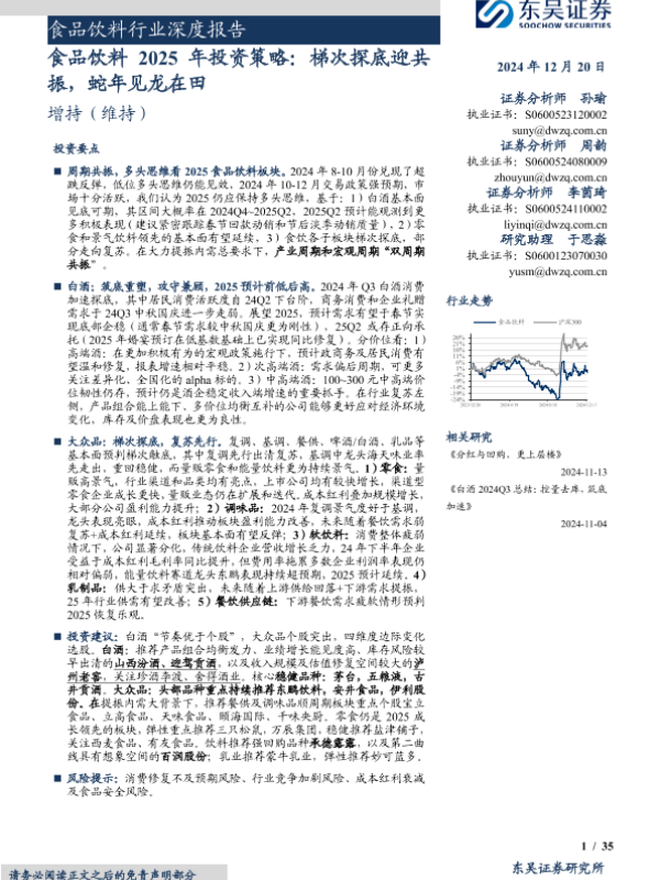 【东吴证券】【20241220】食品饮料行业2025年投资策略:梯次探底迎共振,蛇年见龙在田-35页