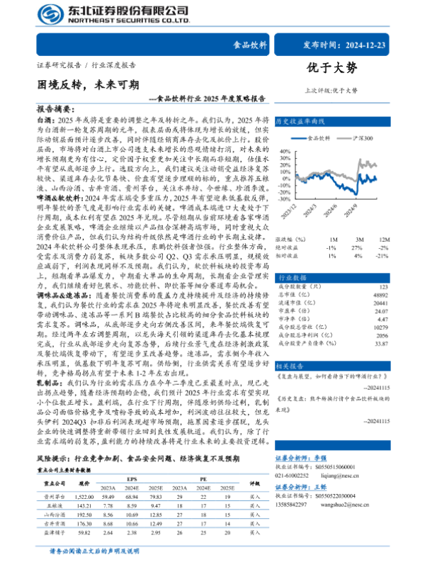 【东北证券】【20241223】食品饮料行业2025年度策略报告:困境反转,未来可期-58页