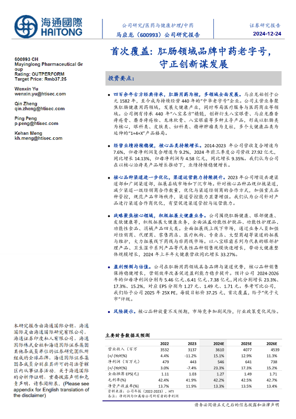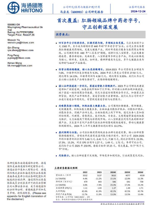 【海通国际】【20241224】马应龙(600993)首次覆盖:肛肠领域品牌中药老字号,守正创新谋发展-13页
