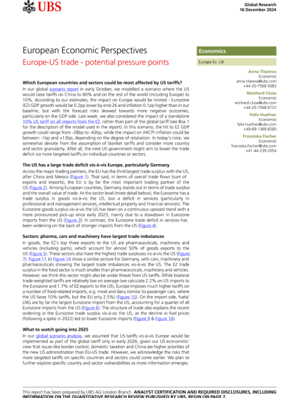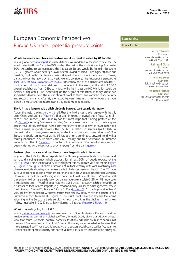 【UBS AG London Branch】【20241216】欧洲经济展望:欧美贸易 - 潜在压力点-10页