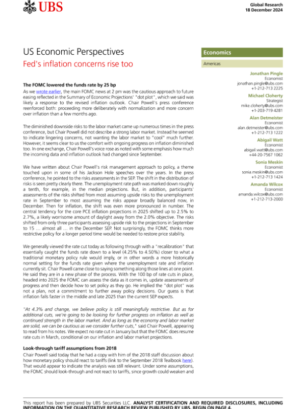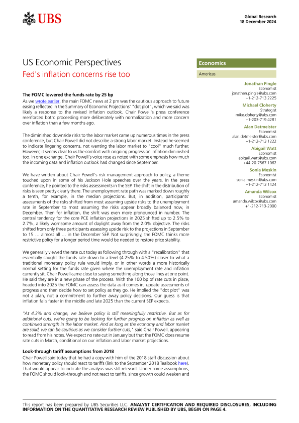 【UBS Securities LLC】【20241218】US Economic Perspectives Fed's inflation concerns rise too-7页