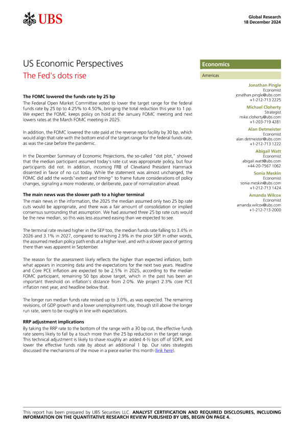 【UBS Securities LLC】【20241218】US Economic Perspectives _The Feds dots rise_-7页